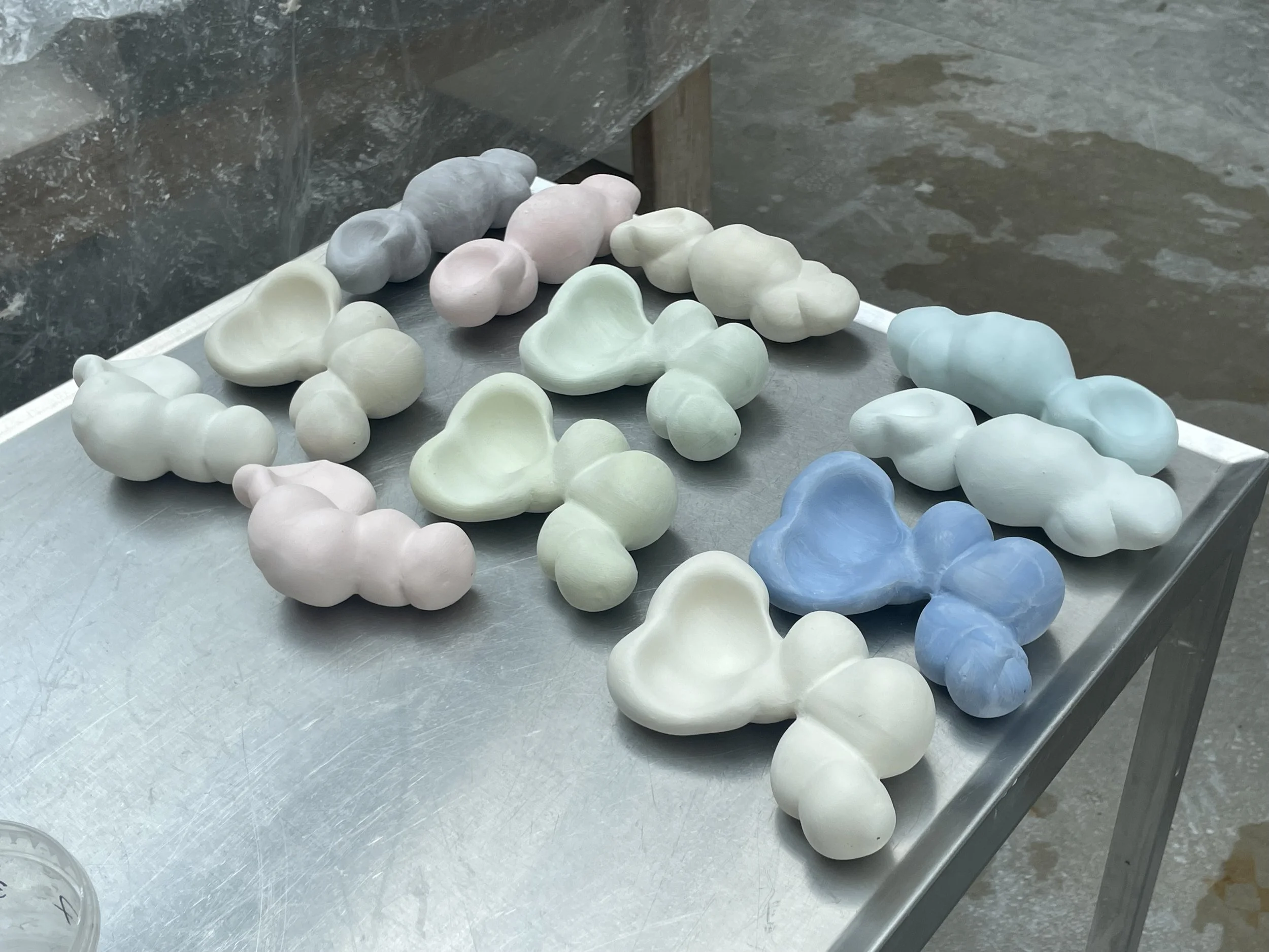 To give my pieces a deeper sensory feeling, I experimented with balloons, condoms, elastics, and plaster to create forms that echoed the body’s natural rolls and structure. While this was fun, not everything turned out to be practical.